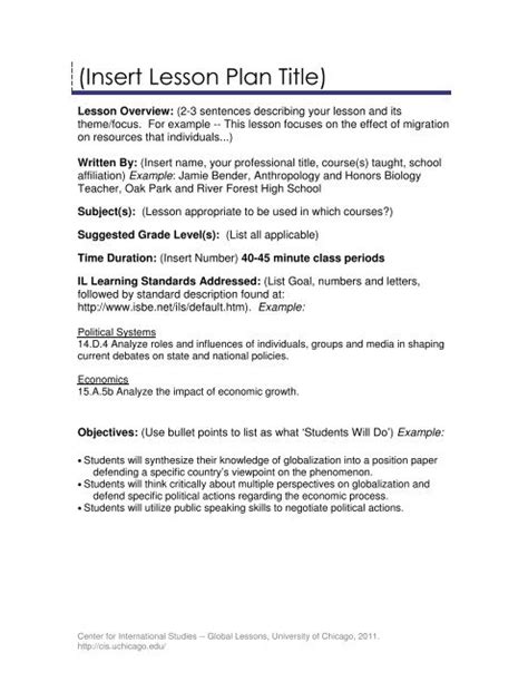 Download cis lesson plan template Hardcover ManyBooks